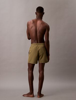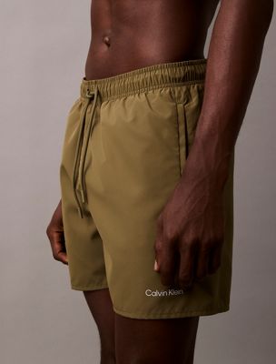 These swim shorts are made with 100% recycled polyester fabric, excluding trims. The recycled polyester is created by reprocessing existing materials.