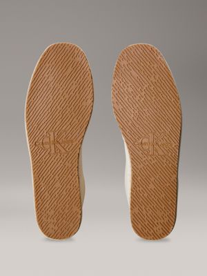 The espadrille upper is crafted with 60% recycled cotton, created by reprocessing existing cotton materials.