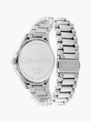 • Calvin Klein logo styling at the dial, clasp and case