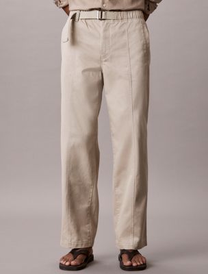 €99.90(inc. VAT)Structured, but relaxed. These trousers are crafted from heavy twill in a wide, straight-leg cut with an integrated webbing belt at the waist.
