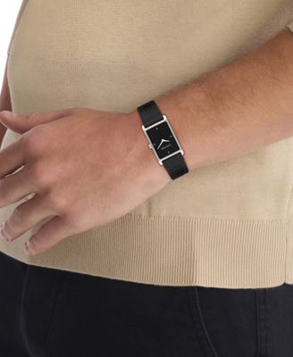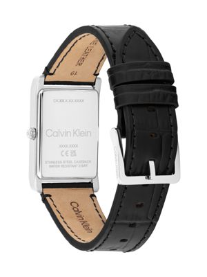 This Calvin Klein Dapper watch stands out in simplicity, with its sleek rectangular case, clean display and classic textured-leather strap.