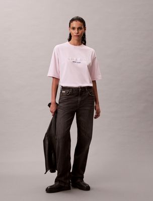 Dress up everyday looks in this signature CK T-shirt featuring a high-shine sequin logo on the chest.