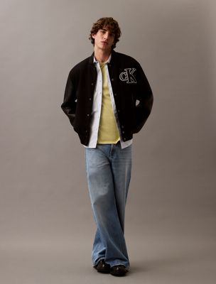 A crisp cotton T-shirt featuring embroidered shield branding for a heritage feel, Calvin style.