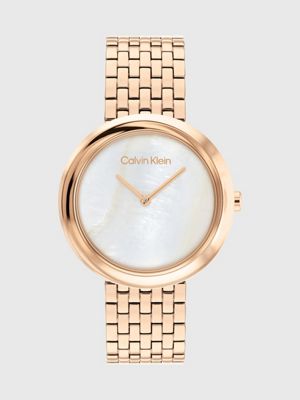 • Calvin Klein logo styling at the dial, clasp and case