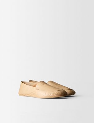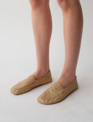 A loafer inspired by slippers and shaped to follow the foot, crafted from calf leather. A foldable heel detail allows for an effortless transition from day to evening. A subtle, minimal logo on the heel adds a sophisticated touch.